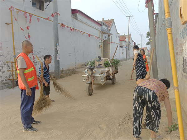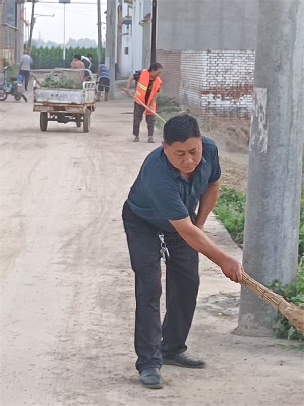 走进任岳村,你会看到这样一幅动人的场景:大队支部书记任付国,带领男女老少齐上阵,他们手持扫帚、铲子、垃圾钳等工具,穿梭在大街小巷、田间地头,认真清理着每一个角落的垃圾杂物。村里的主干道上,村民们三五成群,有的负责清扫路面的尘土和落叶,有的将路边的杂草一一拔除,还有的把堆积的垃圾装进垃圾袋,等待统一清运。在村广场,一些村民正忙着擦拭健身器材和休闲座椅,让这些公共设施焕然一新。村里的坑塘边,几位村民正在清理漂浮物和水草,确保水质清澈,坑塘周边环境整洁美观。
