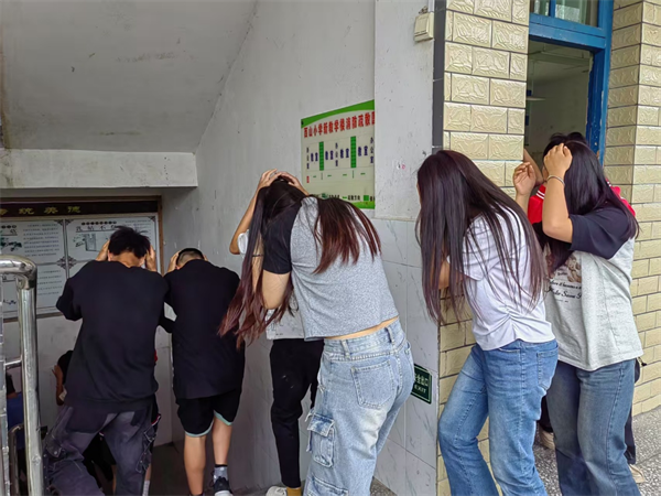 教室内,正在上课的学生迅速做出反应,立即双手抱头、闭眼,躲在课桌旁,蜷曲身体,降低重心,尽可能保护好要害部位。待第一波“地震”减弱,第二声警报响起,在老师的指挥下,学生们按照预定疏散路线,弯腰、捂头,快速、有序地撤离教室,向操场安全区域疏散。整个过程紧张而不慌乱,仅用时1分21秒,全体师生就安全集结完毕。