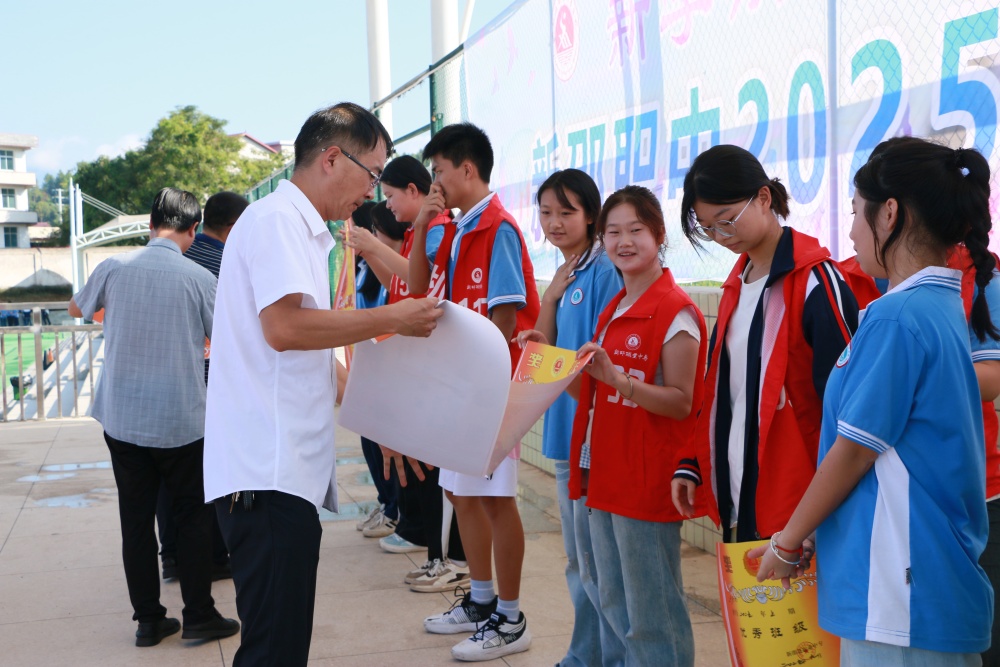 本网讯( 通讯员 舒丹)9月9日上午8时30分,清冽秋雨沁人心脾,新宁县崀山学校全体师生齐聚一堂,迎来了一场别开生面的