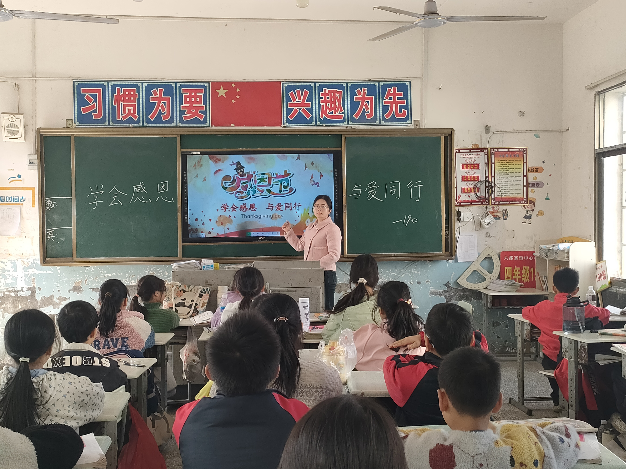 隆回县六都寨镇中心小学开展“学会感恩,与爱同行”主题班会