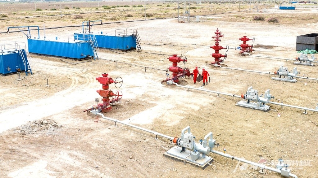 2024年9月3日,中国石油新疆油田分公司吉庆油田作业区(吉木萨尔页岩油项目经理部)员工在57号平台更换油嘴,确保新井生产正常运转。该作业区57号平台的16口产能井是2024年第一批产能井,5月份投产,标志着吉木萨尔页岩油开发主体技术日臻成熟,规模效益日益显现,展现出了极大的规模上产潜力,进一步增大了全面建成吉木萨尔页岩油示范区的信心。(摄影:张昀)
