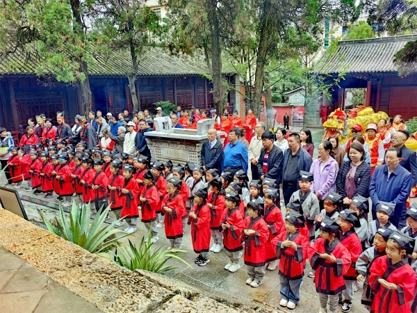 “童蒙养正,少年养志,成人养德”,这是古人的教育智慧。《三字经》是千百年来用于启蒙儿童的主要教材之一。它不仅教导儿童识字,更教给孩子们一些最基本的道德规范和历史文化常识。祭孔之后,来自呈贡育才幼儿园的七十二名小朋友作为学子代表在老师的带领下齐声诵读《三字经》选段,小朋友们铿锵有力的经典诵读之声,赢得了到会全体来宾的热烈掌声!
