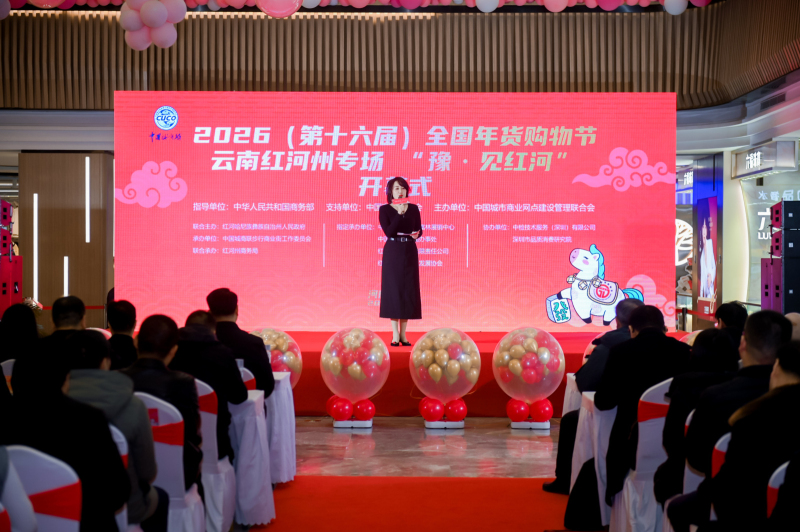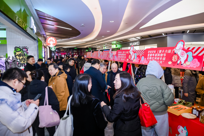 1月25日,“豫·见红河”2026第十六届全国年货购物节·红河州专场活动在郑州永和·时光里购物中心盛大启幕。本次活动是在中华人民共和国商务部和中国商业联合会指导支持下由中国城市商业网点建设管理联合会(以下简称中国城商联)主办,由云南省红河哈尼族彝族自治州人民政府联合主办的全国性大型活动。
