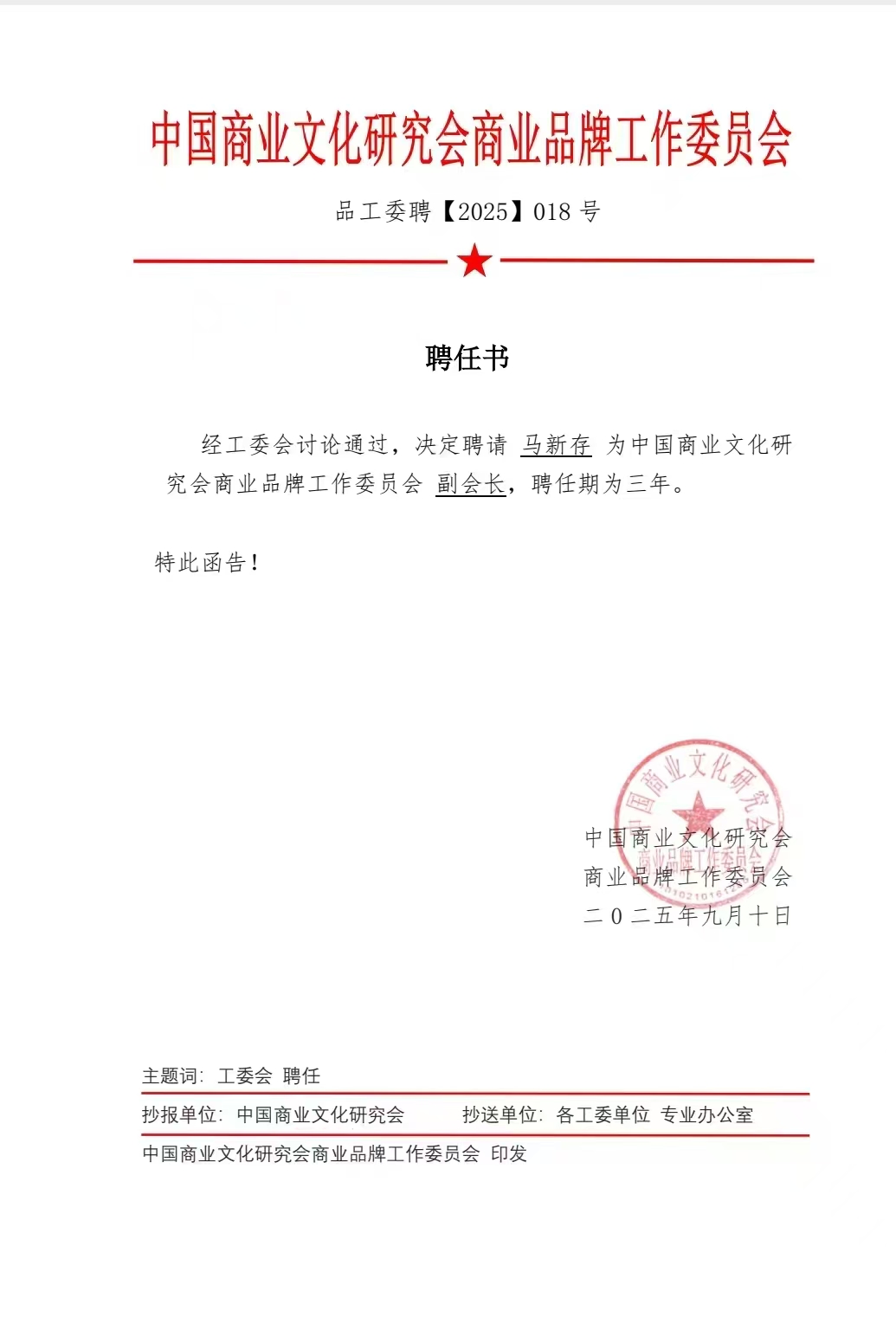 马新存担任中国商业文化研究会商业品牌工作委员会副会长 深耕品
