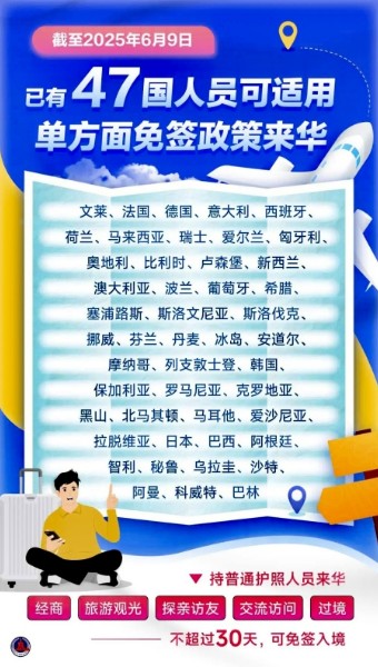 中国单方面免签“朋友圈”增至47国