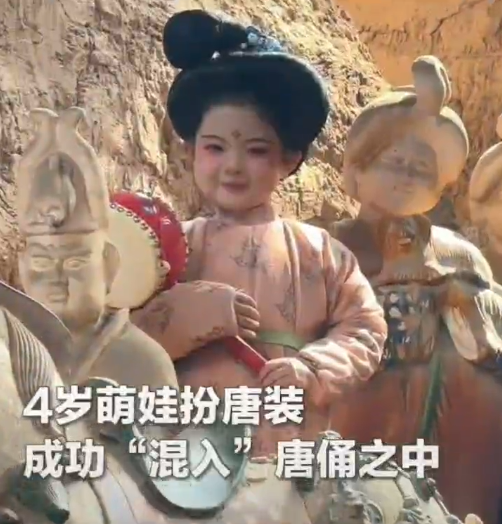4岁萌娃扮唐装成功“混入”唐俑之中