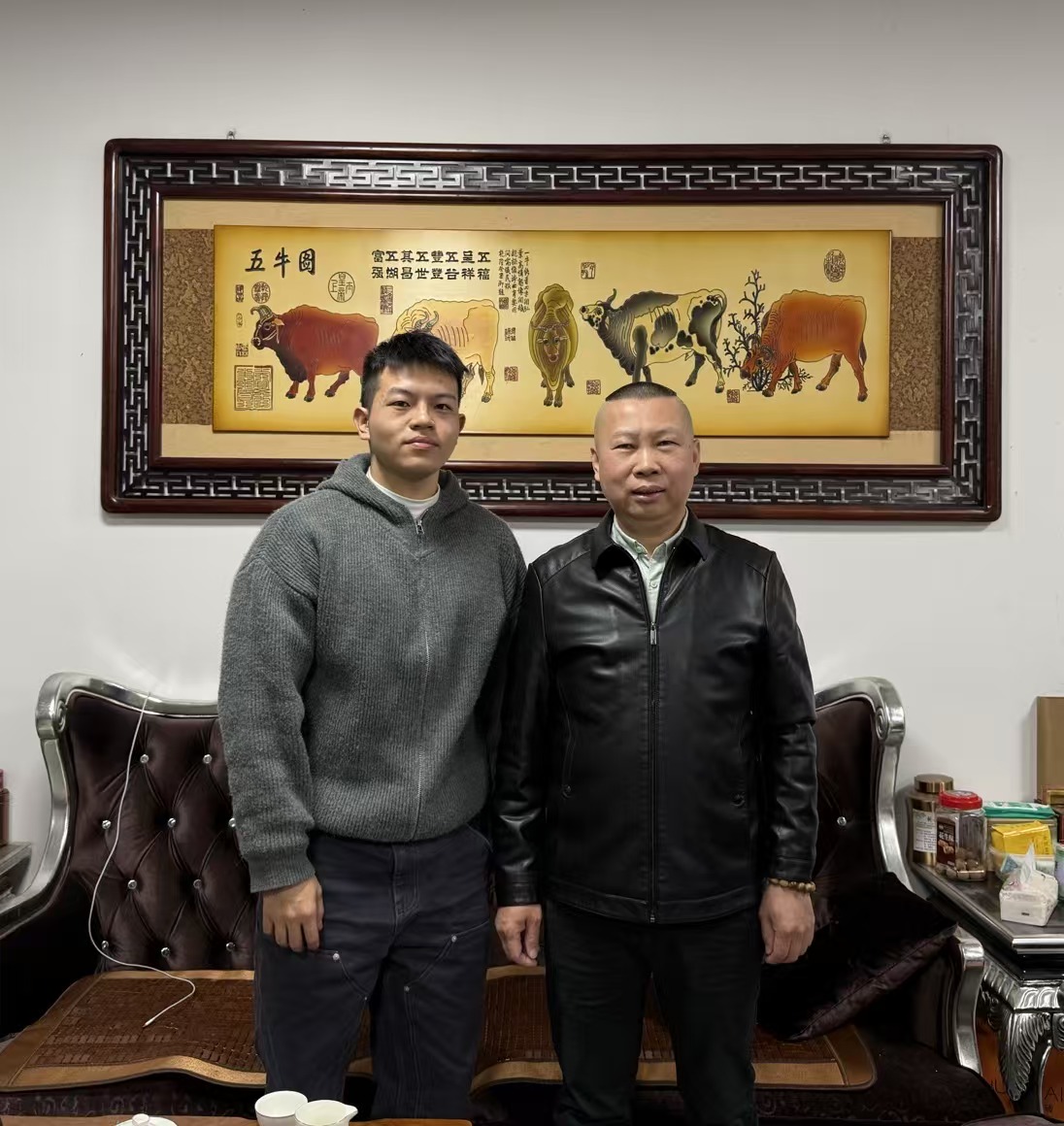 2025年12月18日下午拥军爱警网副总监杨志根在强辉瓷砖泉州总经理苏锦坤陪同下受邀走访优秀青年书法家苏柏棋