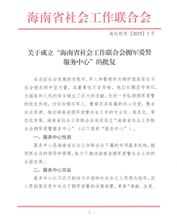 海南省社会工作联合会拥军爱警服务中心获批,受到社会广泛关注与响