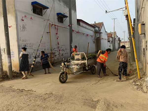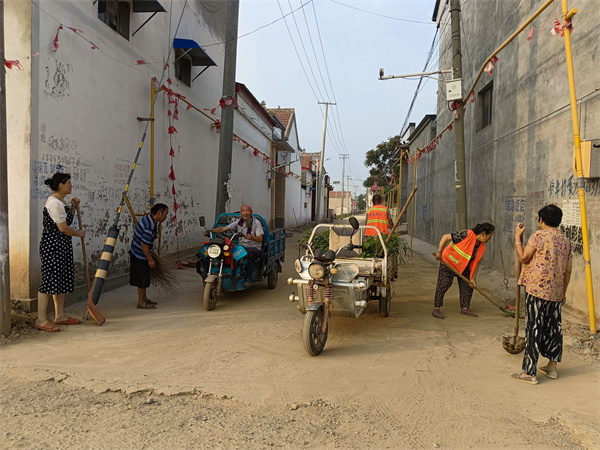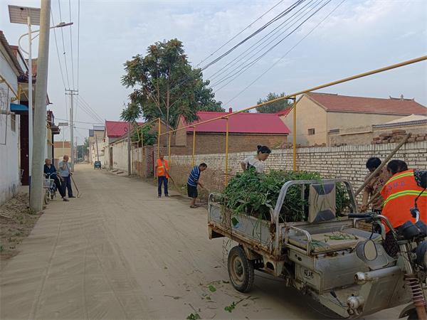 走进任岳村,你会看到这样一幅动人的场景:大队支部书记任付国,带领男女老少齐上阵,他们手持扫帚、铲子、垃圾钳等工具,穿梭在大街小巷、田间地头,认真清理着每一个角落的垃圾杂物。村里的主干道上,村民们三五成群,有的负责清扫路面的尘土和落叶,有的将路边的杂草一一拔除,还有的把堆积的垃圾装进垃圾袋,等待统一清运。在村广场,一些村民正忙着擦拭健身器材和休闲座椅,让这些公共设施焕然一新。村里的坑塘边,几位村民正在清理漂浮物和水草,确保水质清澈,坑塘周边环境整洁美观。