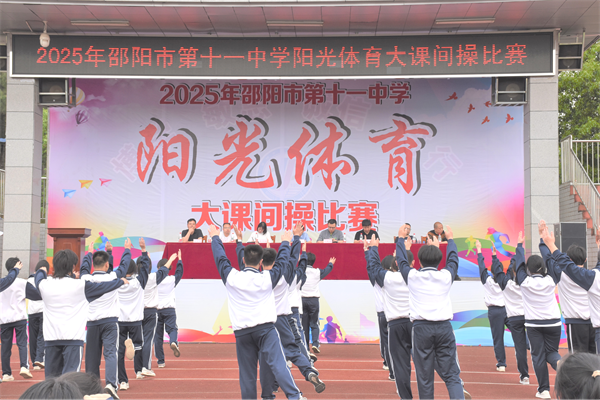 本网讯(通讯员:邓佩)4月11日下午,邵阳市第十一中学操场上队列整齐,口号震天,一场精彩纷呈的课间操比赛在此隆重举行