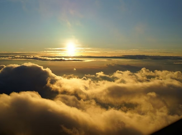 破晓前夕的景象尤为动人。东方天际初现淡白的微光,随即晕染开橘粉色的霞彩。当初升的阳光跃出地平线,翻涌的云海瞬间披上金辉,流光溢彩的山峦间,金色云浪奔涌流淌。此刻,夜空的星辰悄然隐退,壮丽的朝阳与无垠云海共同谱写晨光序曲。