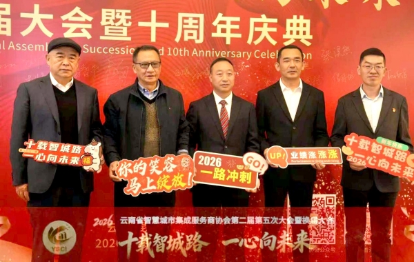 新华卫视网讯(赵永忠 杨雪煌)2026年2月7日,云南省智慧城市集成服务商协会第二届第五次会员大会暨换届选举大会在昆明成功举办。本次大会以“十载智城路,一心向未来”为主题,集换届选举、十周年庆典与行业交流于一体,系统回顾协会十年历程,展望智慧城市产业发展新蓝图。