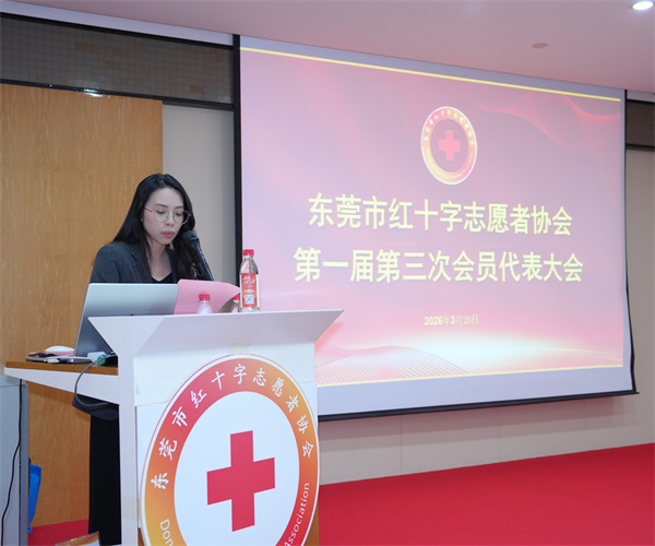 本网讯(吴静 王小玲) 3月28日,东莞市红十字志愿者协会第一届第三次会员代表大会、第三次理(监)事会在南城世纪城集团总部9楼召开。全体会员代表齐聚一堂,回顾2025年工作成果,共商2026年发展大计,凝心聚力,笃定前行,为东莞红十字志愿服务事业高质量发展擘画新蓝图。我会会长牛凤梅,监事长范祖全,副会长林洁莹、高伟、叶慧坚、张冬莲等出席会议。会议由副会长林洁莹主持。
