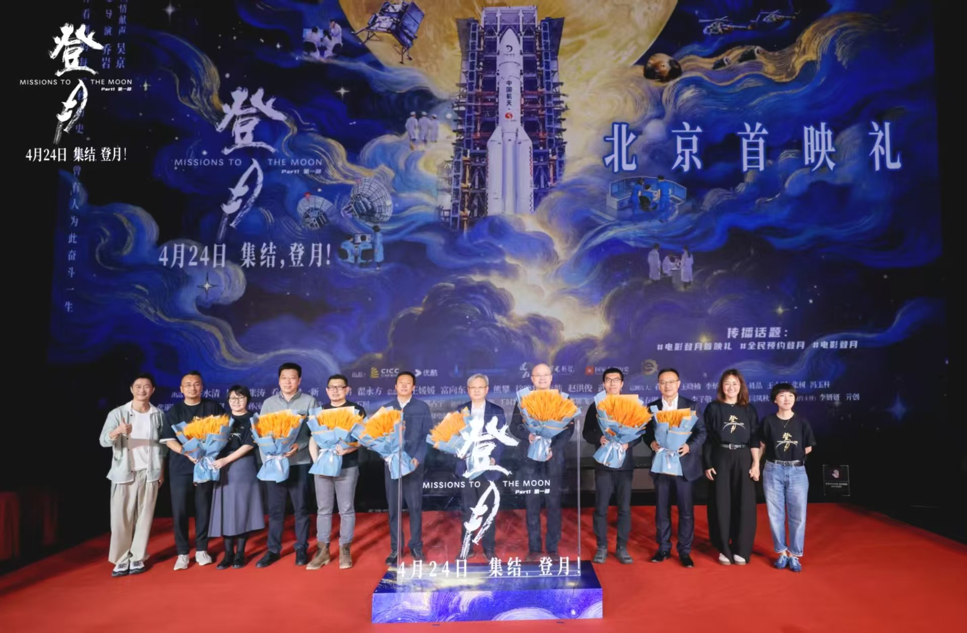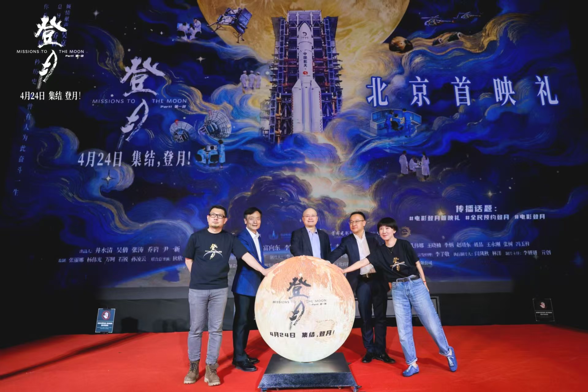 电影《登月》(第一部)由五洲传播中心、优酷信息技术(北京)有限公司、国家航天局新闻宣传中心、北京逆光映像文化传媒有限责任公司、北京首都华融影院有限责任公司、人民日报《国家人文历史》杂志社、四川嘉汇懿行影视传媒公司联合出品,北京首都华融影院有限责任公司宣发。影片将于4月24日中国航天日正式登陆全国院线,目前全国超前点映正在火热进行中。电影《登月》(第一部)官方终极预告片
